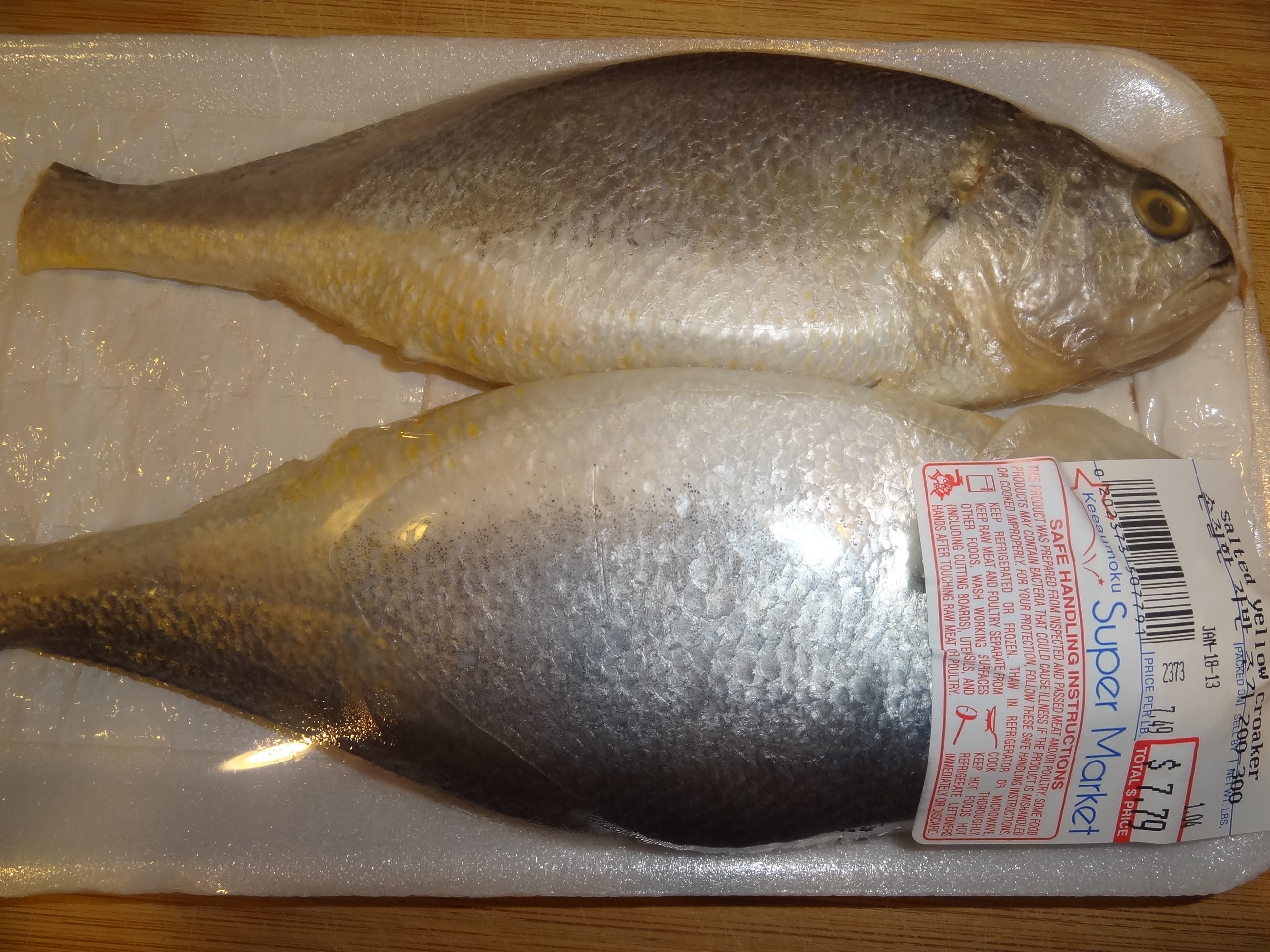 - A couple Whole Fish (Croaker is what I use). I also get this at the Korean supermarket as it is already cleaned so all I do is cut in half.