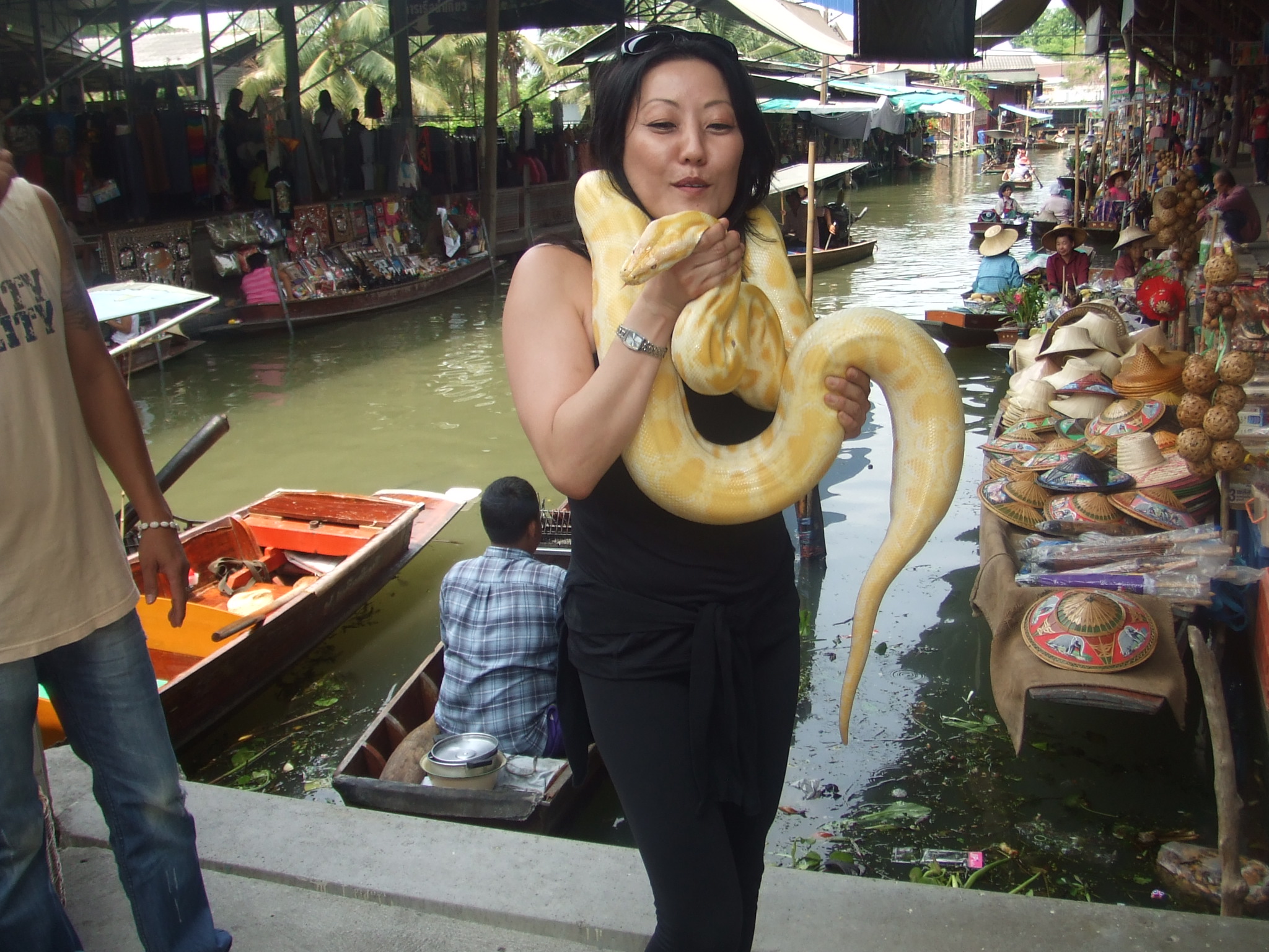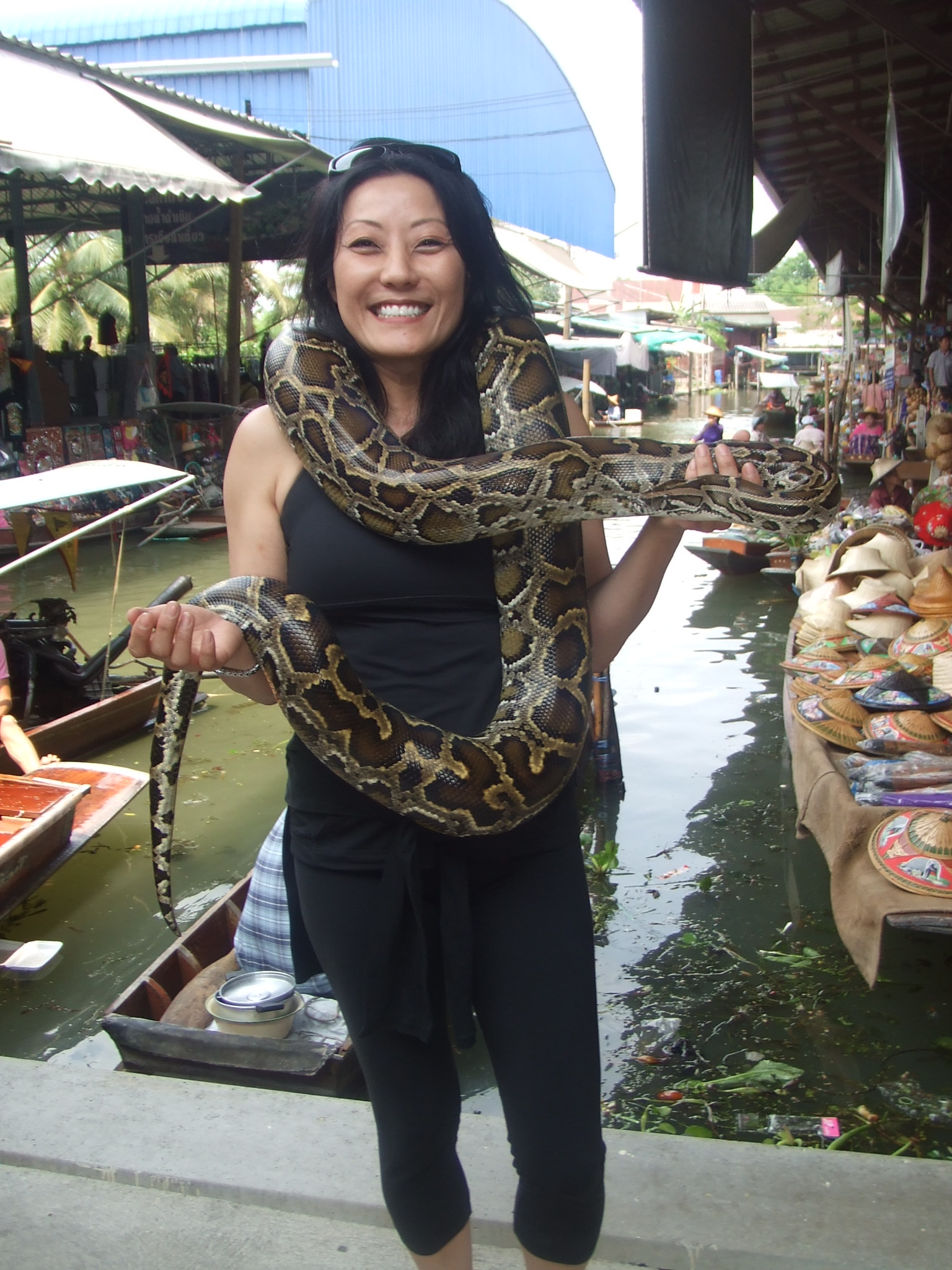 While at the Floating Marketing…being the pushover I am, I decided to make friends with a couple snakes! Another unforgettable experience that I do not need to try again. You can see how scared I am! YIKES!!!!