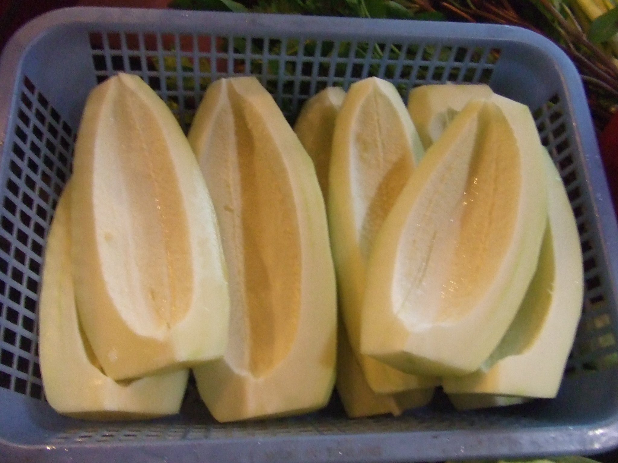 This is what the Green Papaya looks like peeled, before it is shredded.