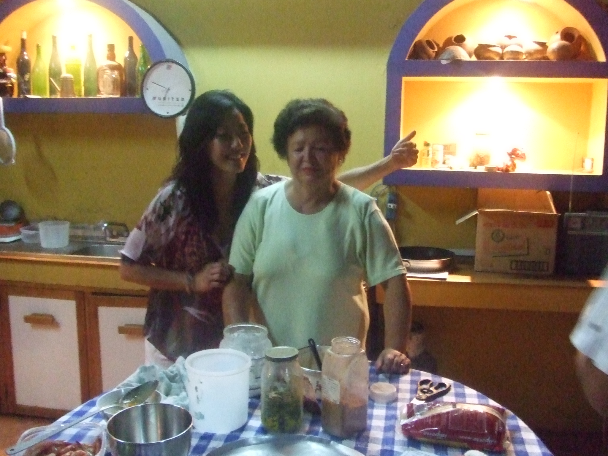 Next most amazing and memorable experience in Costa Rica was learning to cook Seafood Paella from Mercedes beautiful mother! WOW! She first is showing how she rubs fresh cucumber on her skin to keep it youthful. It obviously works for her.