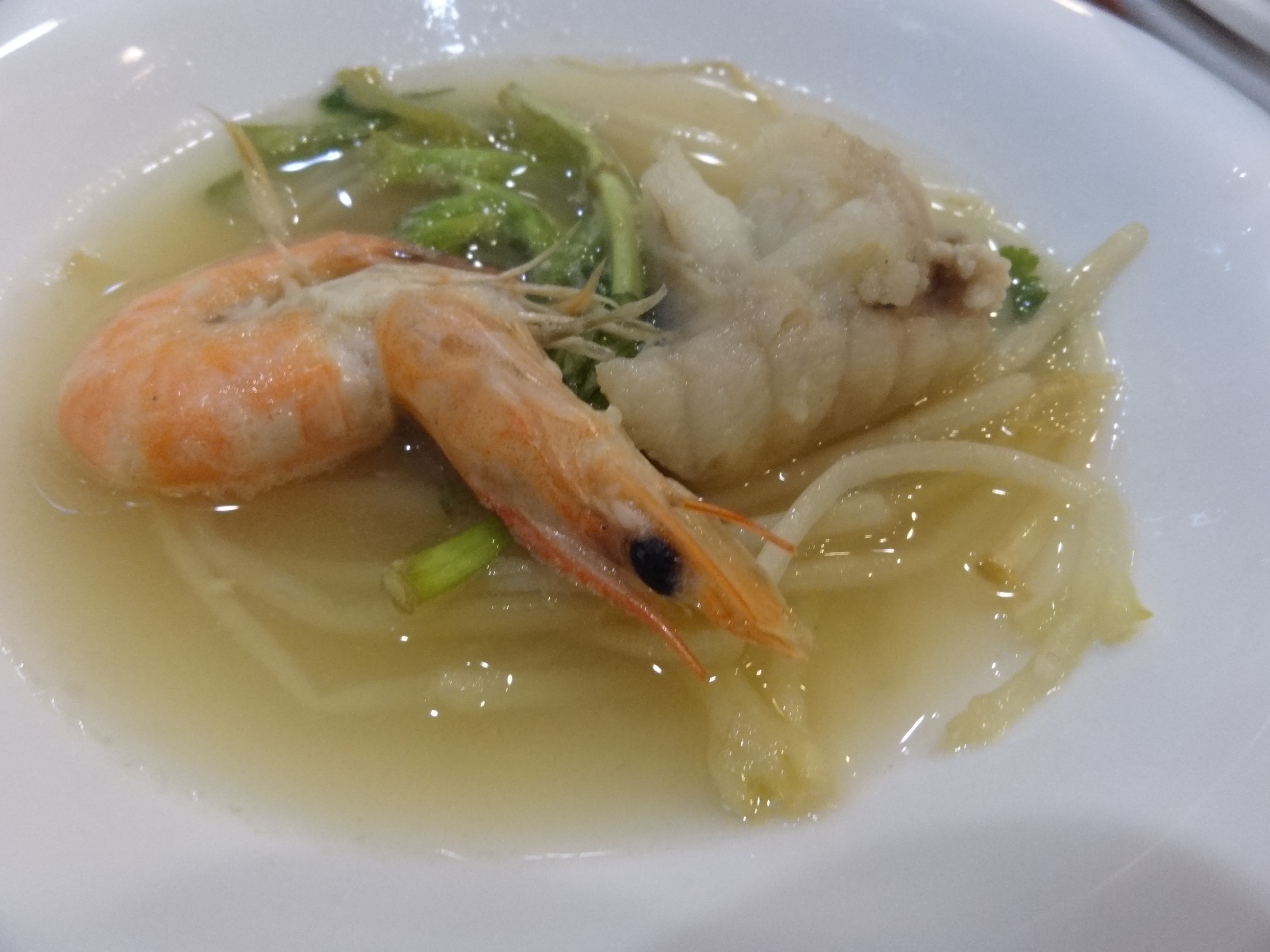 Next course is the Clear Seafood Broth with Fish, Shrimp, lots of Veggies. It was perfect for the chilly weather!