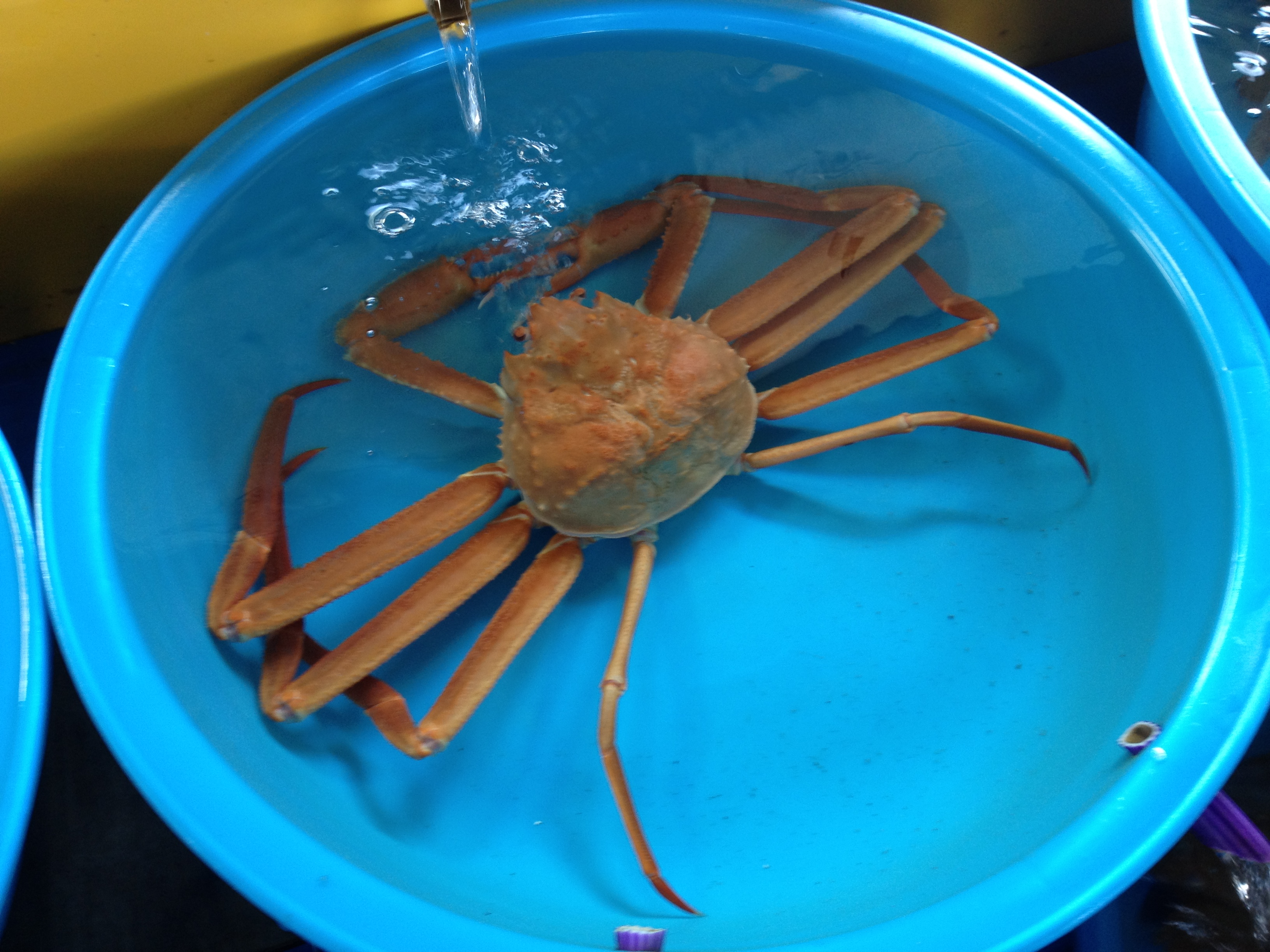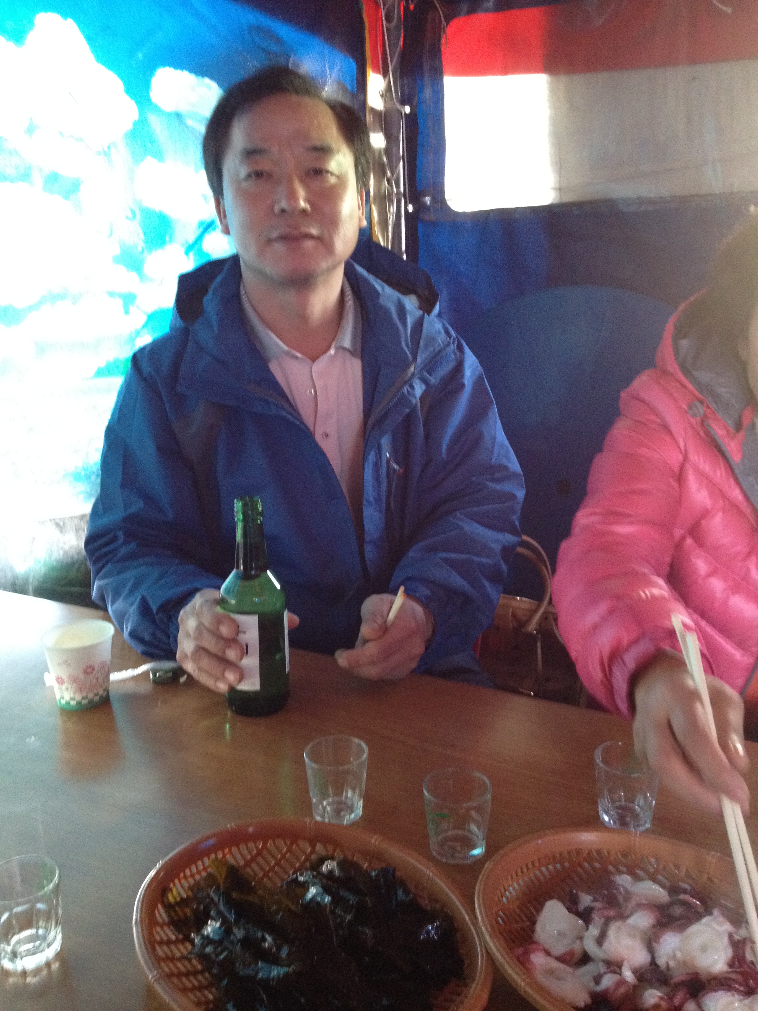 Here is my uncle who brought us here. We waited patiently on plastic stools and ordered some SOJU. They gave us some crab legs to nibble on.