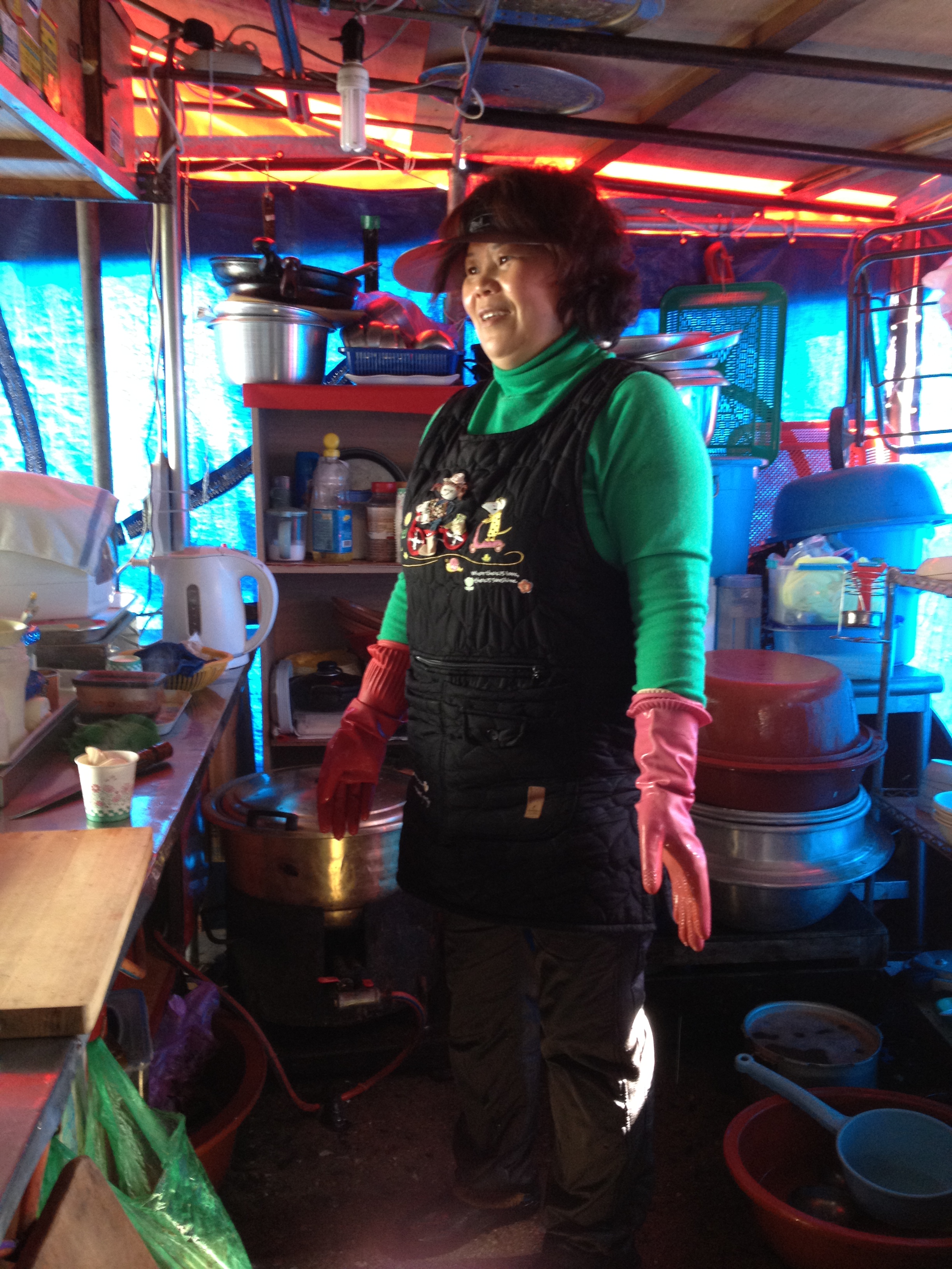 It was brought over to this woman, the expert as you can see in the next video… she stirs boiling hot water by hand with just a rubber glove on. She said after so many years, she is used to the heat. YOWZA!!!!
