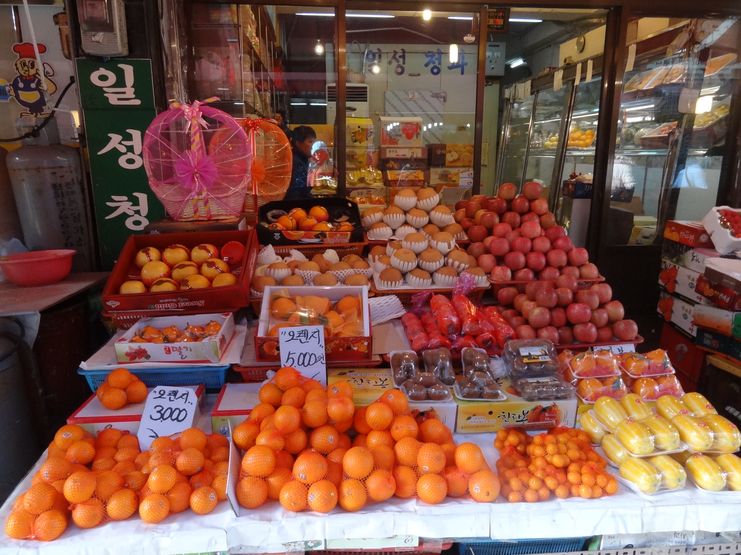 Not everything is different here… they have lots of fresh Fruits and Veggies. In fact, I have to say I’ve eaten some of the sweetest, freshest fruits in Korea. They don’t come close to what I have at home, especially their Strawberries, Tangerines, Watermelon, Peaches, Pears and Grapes! My favorite fruits!