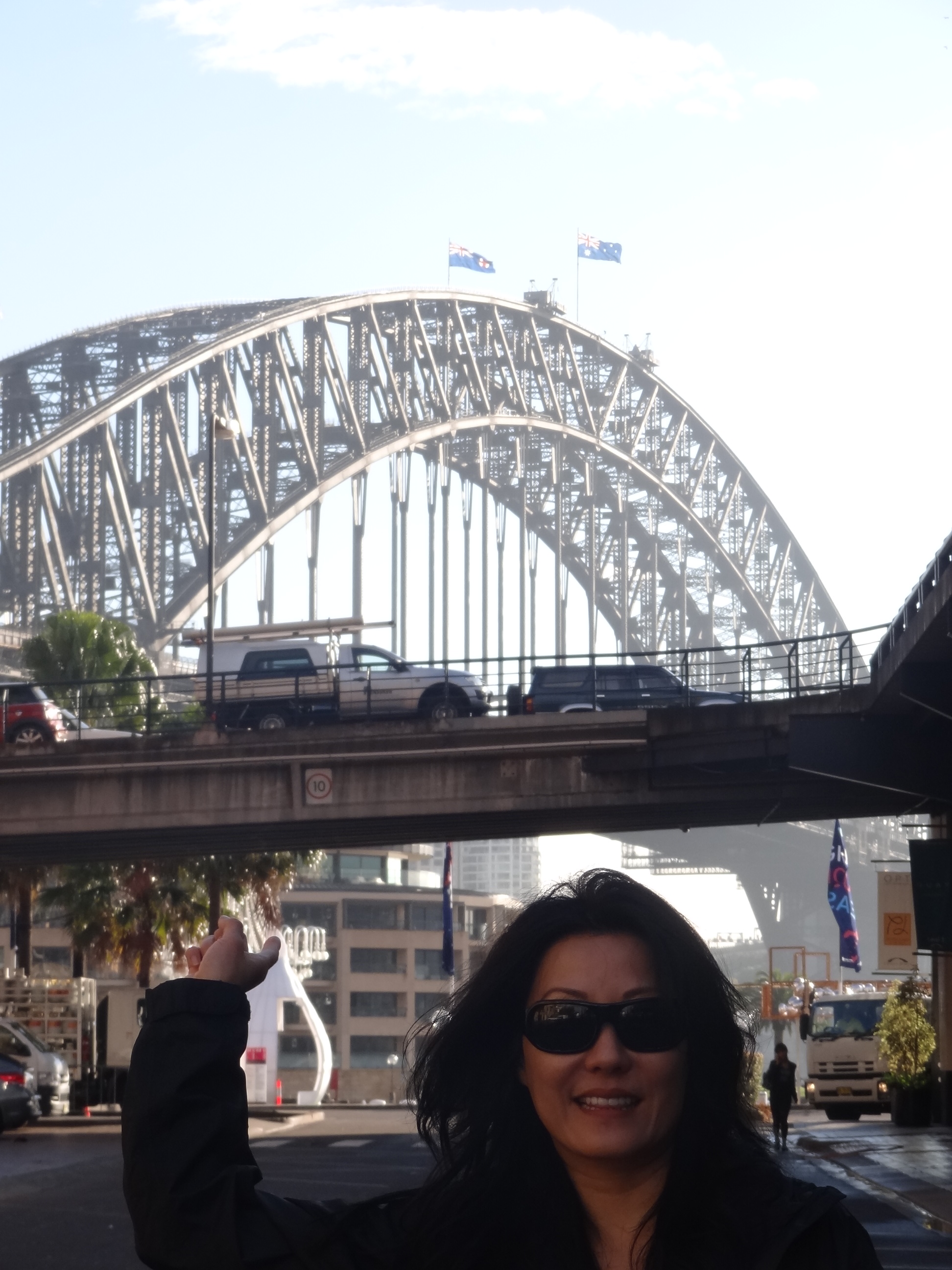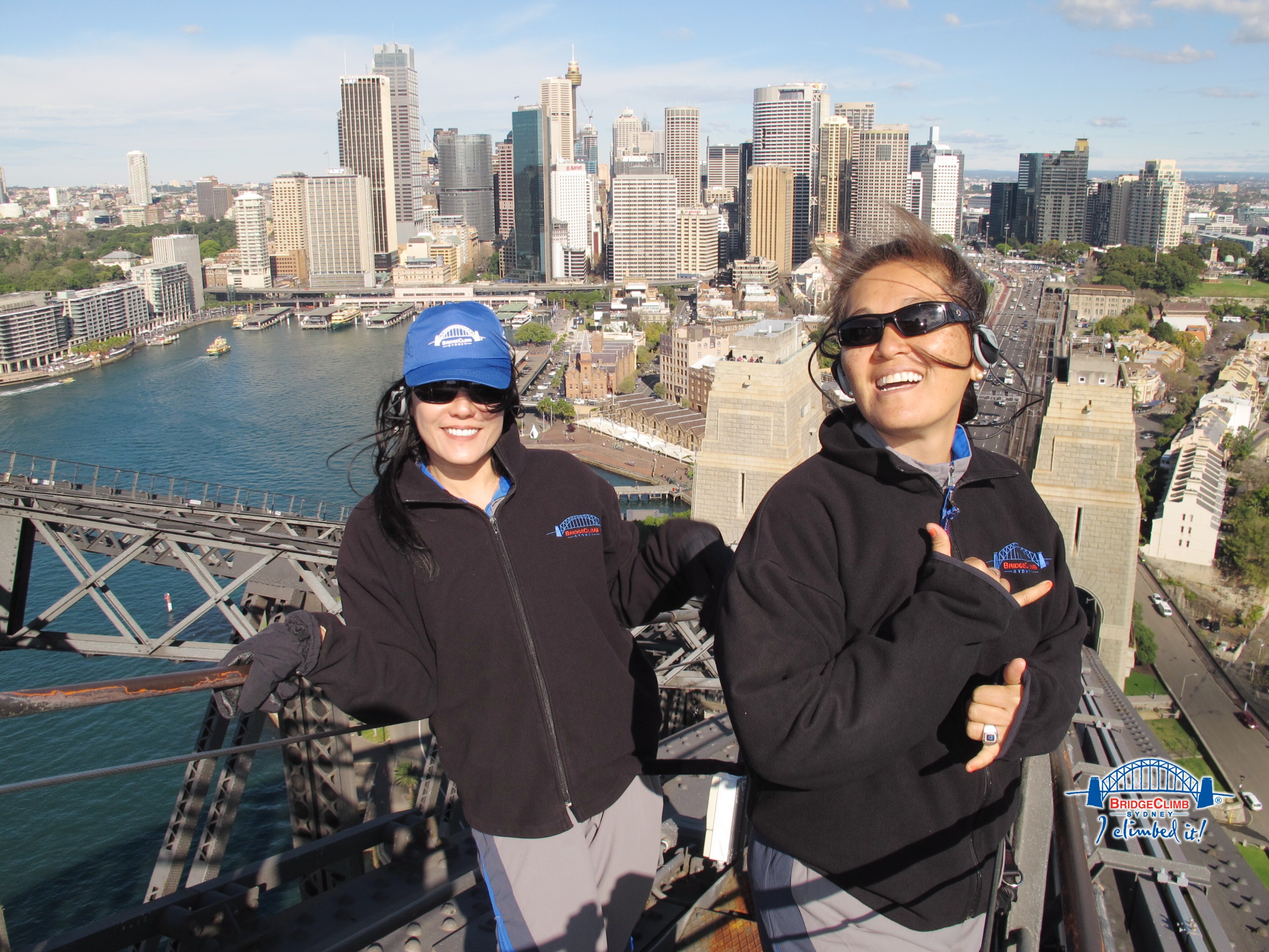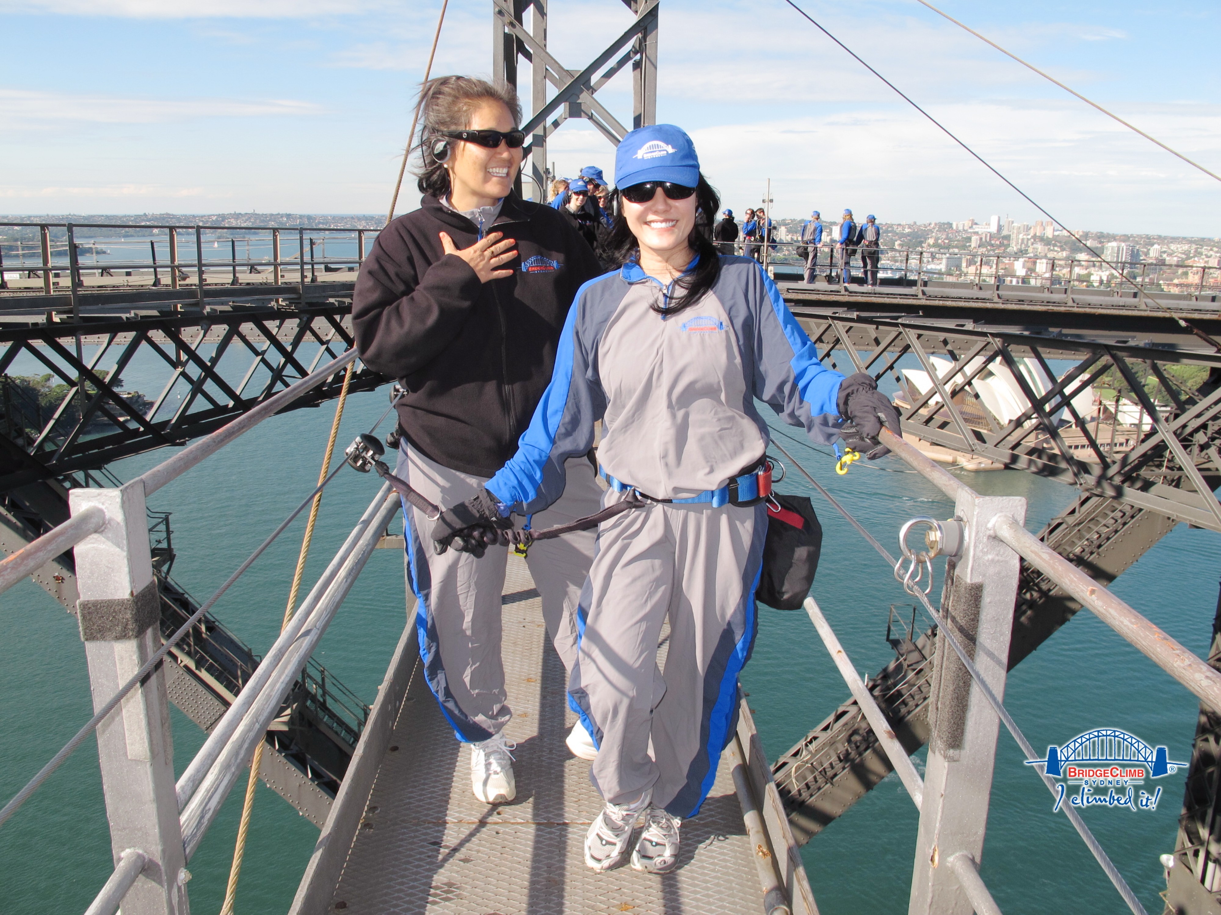 As many of us fear…I too, am afraid of heights. I’ve tried to confront it by Skydiving in Hawaii, Ziplining in Costa Rica, even lived on the 15th floor of a Condo but never stood out on the balcony, afraid the railing would break and I may fall. I don’t know where this fear of heights came from. I suppose some of us are just born this way???? On my trip to Australia, after a couple of months of persuasion, I finally convinced my friend Shelley to climb the Harbor Bridge.