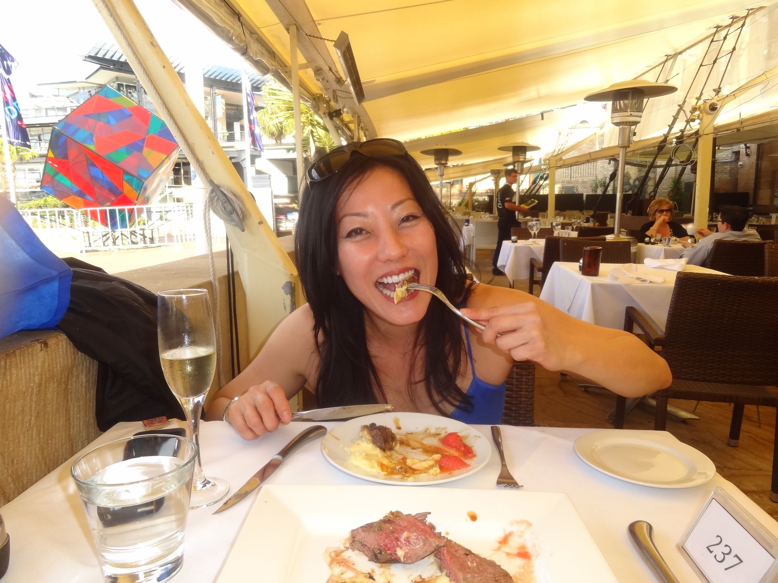 I knew I wanted to try Kangaroo meat while in Australia so was happy to find a combo of Kangarood meat and Crocodile tail on the menu. I was advised to make sure to order the meat medium rare, as it can get tough if over-cooked. It is very lean, high in protein and tasty! They served it with vegamite butter.