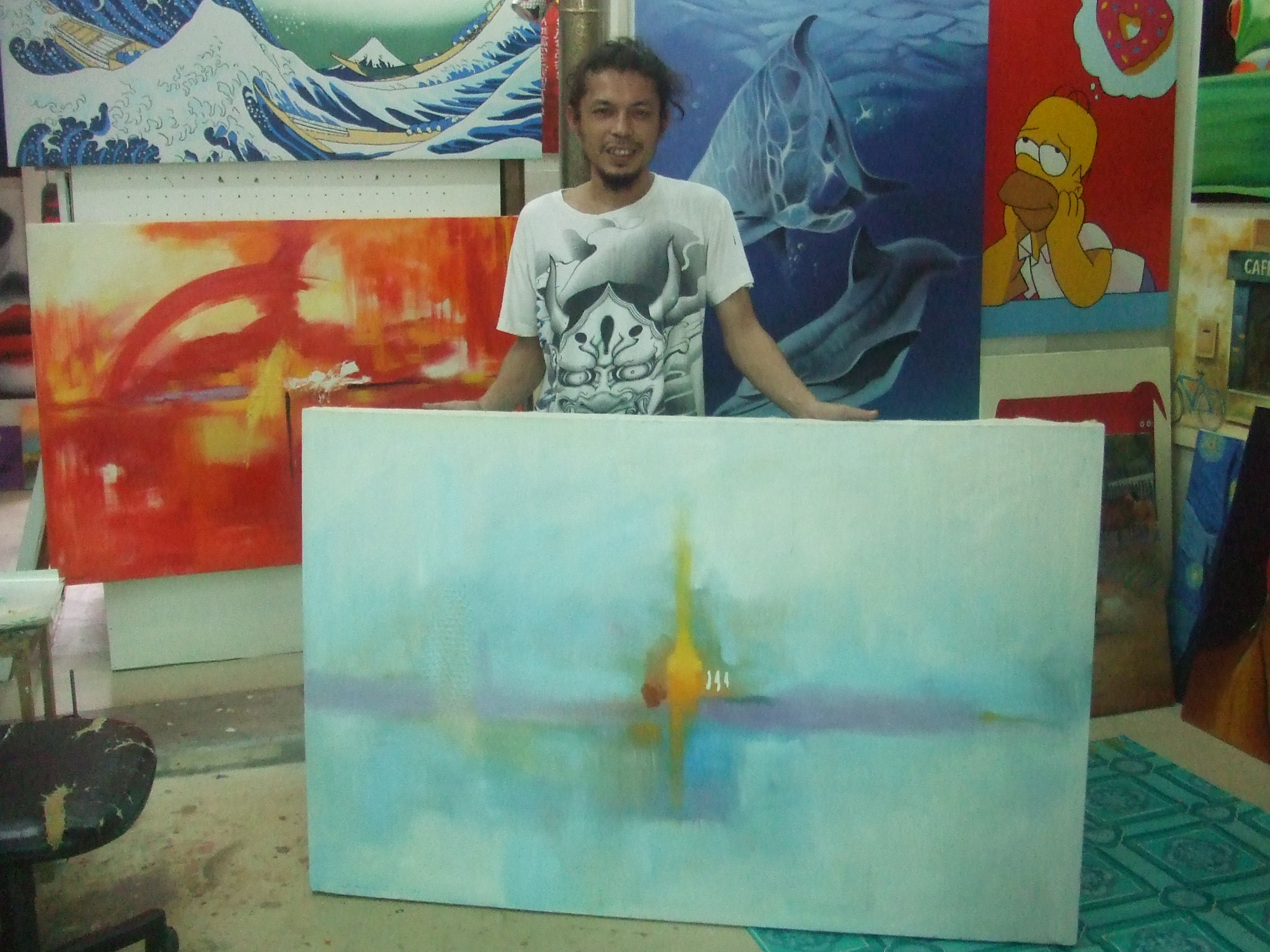 As my friend and I wandered the local streets of Thailand…we stumbled across this small art shop. The artist greeted us with a big smile and had a really nice energy about him. He is truly doing what he loves in life, works hard and is happy. This particular piece caught my eye and I knew it had to come home with me.