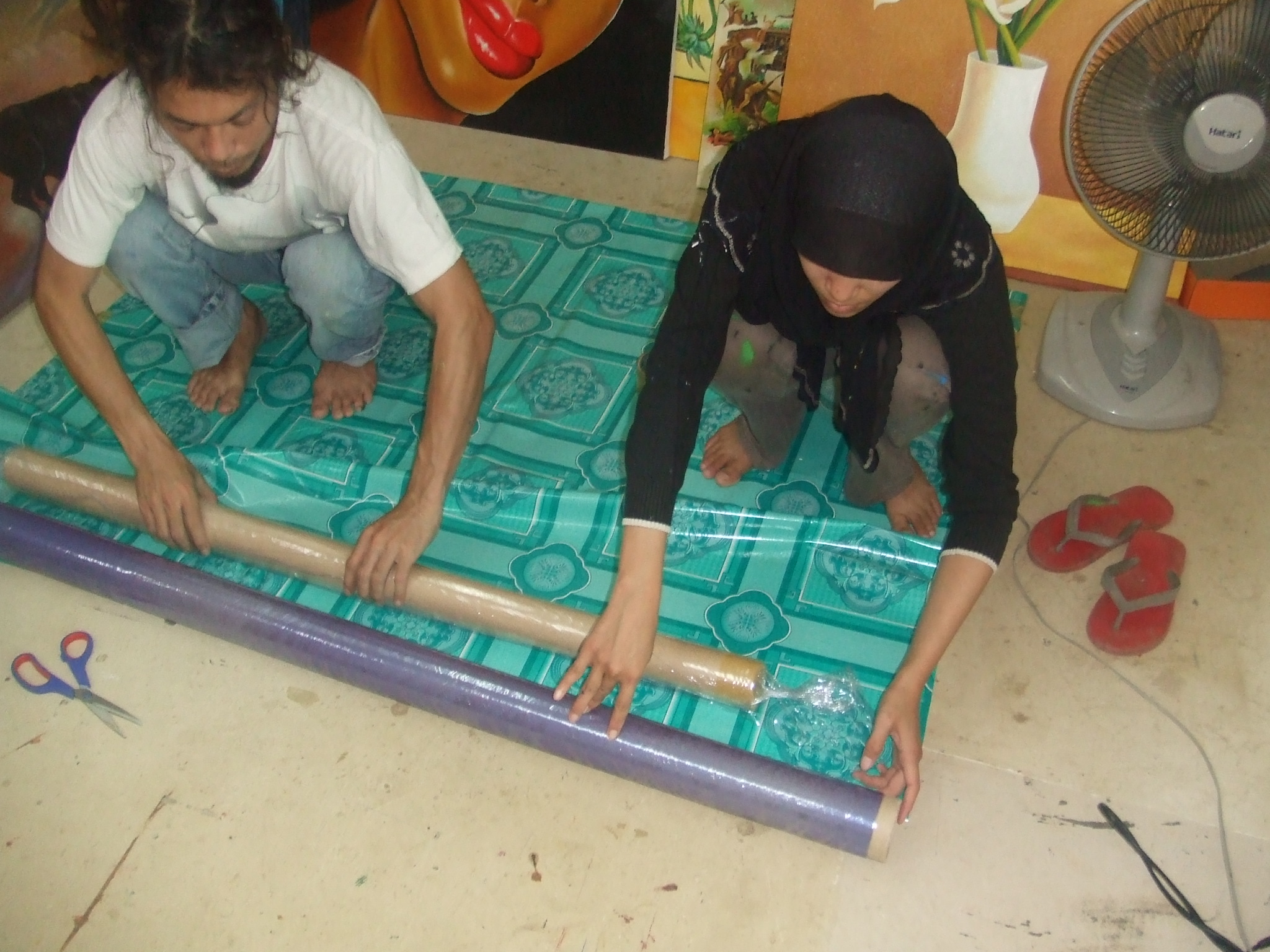 This is the artist and his wife. Together, they carefully and meticulously wrapped the artwork so I could bring it home safely.