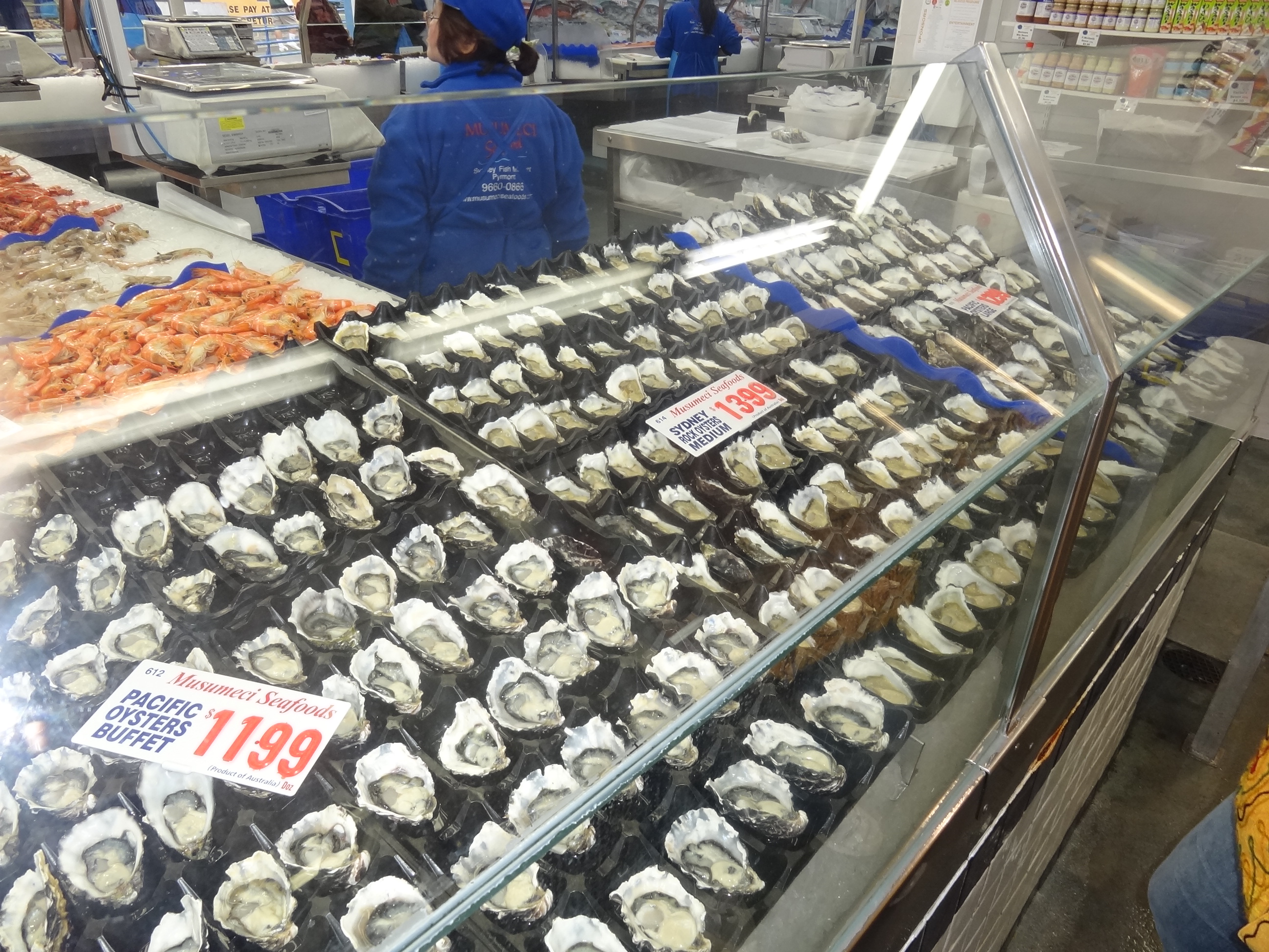You smell the ocean walking in. I coudn’t believe all these oysters displayed, then realized this hard worker had to shuck oysters all day, everyday! I wondered how many years he’d been doing this, but as he looked like an expert, it must’ve been a lot !