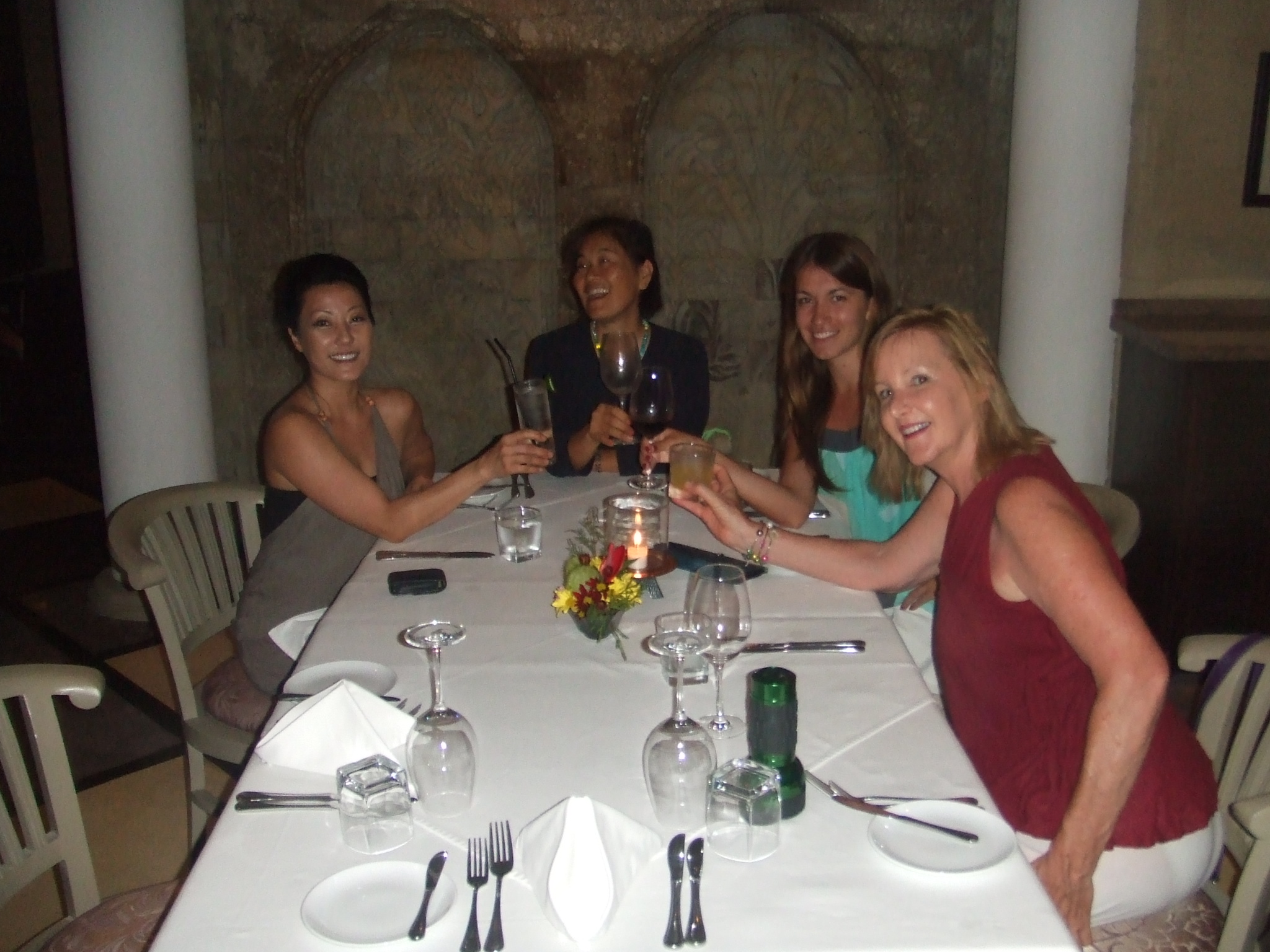During the dinner, Shelley decides to play a prank on the wait staff and kept drinking all her water and hiding her glass under the table. They were puzzled why her glass kept disappearing but didn’t say a peep and kept bringing her a new glass. Finally,Shelley drank so much water, she couldn’t take it anymore and and had to confess. We all had a great laugh!