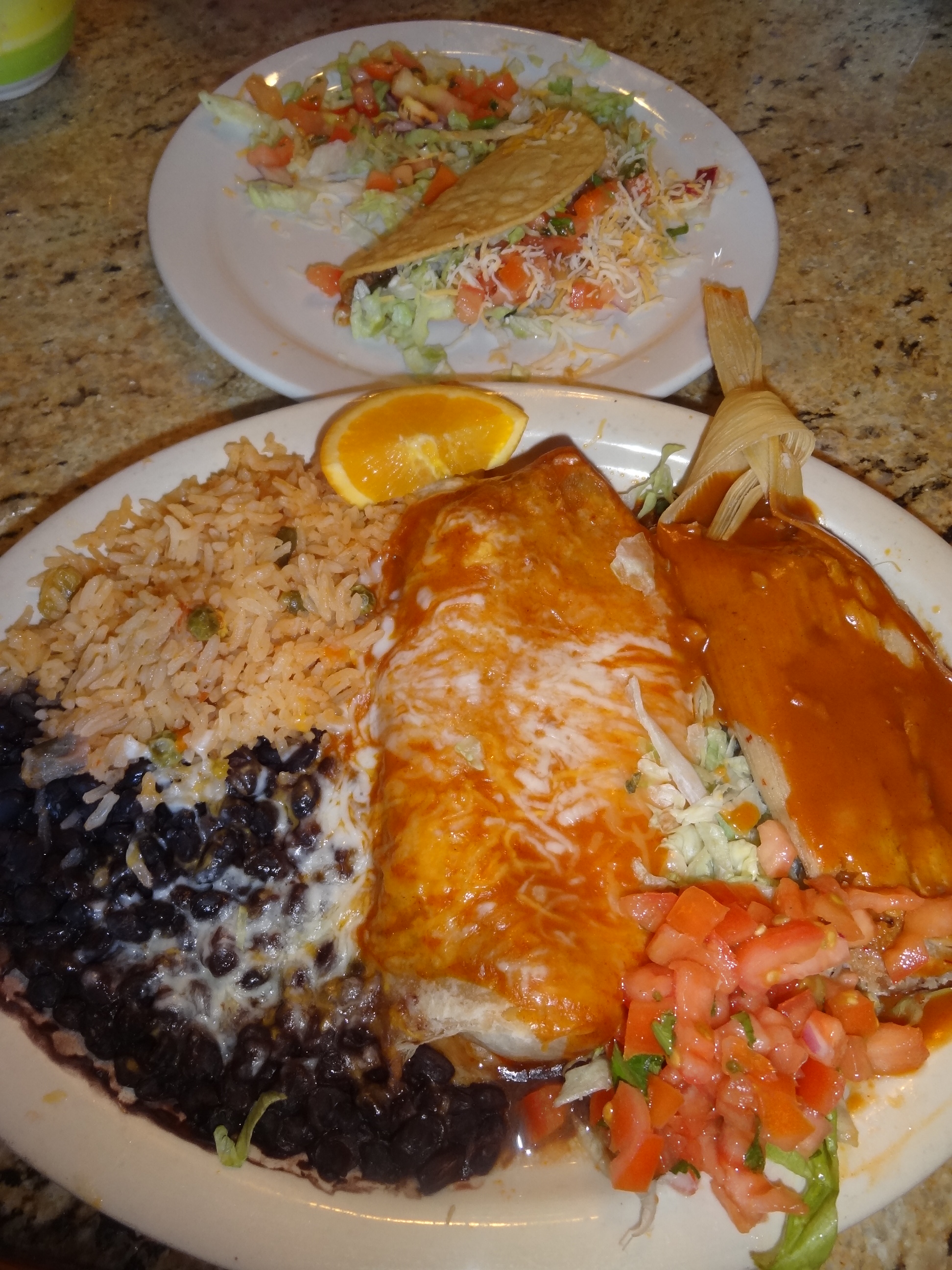 I was so starved so I wanted one of everything. I ordered a triple combo with a Beef Burrito, Chicken Enchilada AND a Beef Taco with BLACK beans and Rice! For only $18.95, this was quite a deal! I didn’t realize the portions would be so huge! Guess what I’m having for dinner tonight…