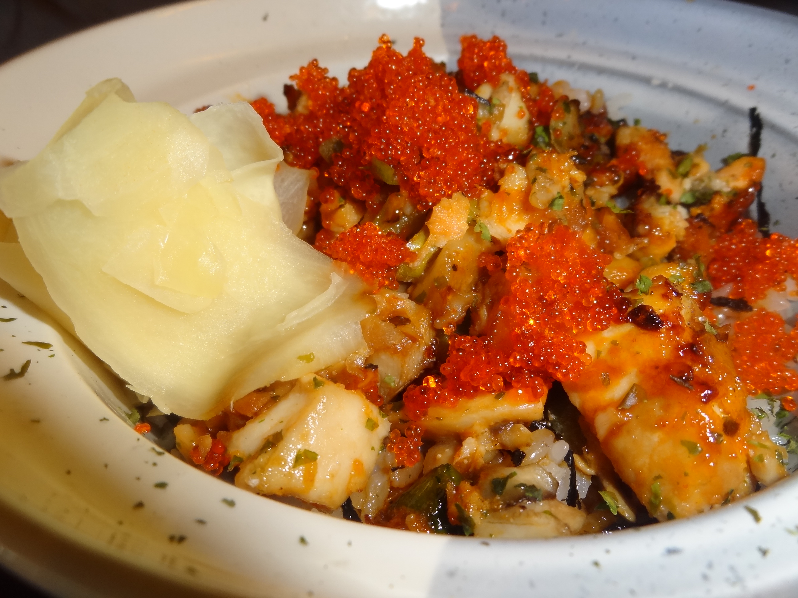 Marche ordered the Firecracker Donburi. Lots of goodies served over hot rice, which she loves!